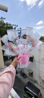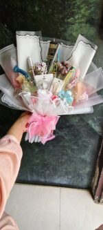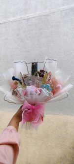 A perfect blend of beauty and gifting, our BlushGlow Bouquet combines jewellery, cosmetics, and elegant wrapping to create a luxurious surprise. Designed in soft pink tones, it’s ideal for birthdays, bridesmaids, and special occasions.