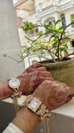 A graceful fusion of heritage and modern design, this Kashmiri rectangular dial watch adds a refined touch to your ethnic and festive looks.